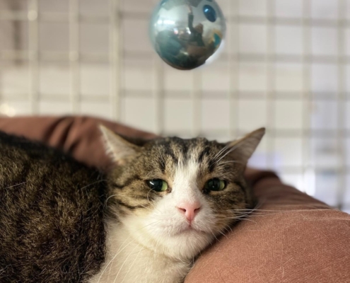 C’est notre doyen de 13 ans, un chat affectueux mais qui a besoin que l’on respecte son espace.