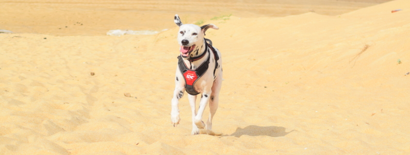 Ce beau dalmatien vient tout juste de revenir de deux semaines de vacances dans les Landes avec ses adoptants. Toujours aussi joyeux et en pleine forme, il profite de chaque instant aux côtés de sa famille.