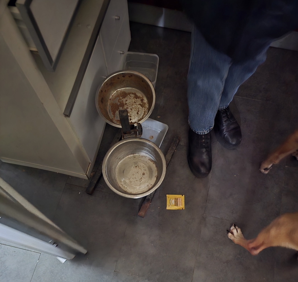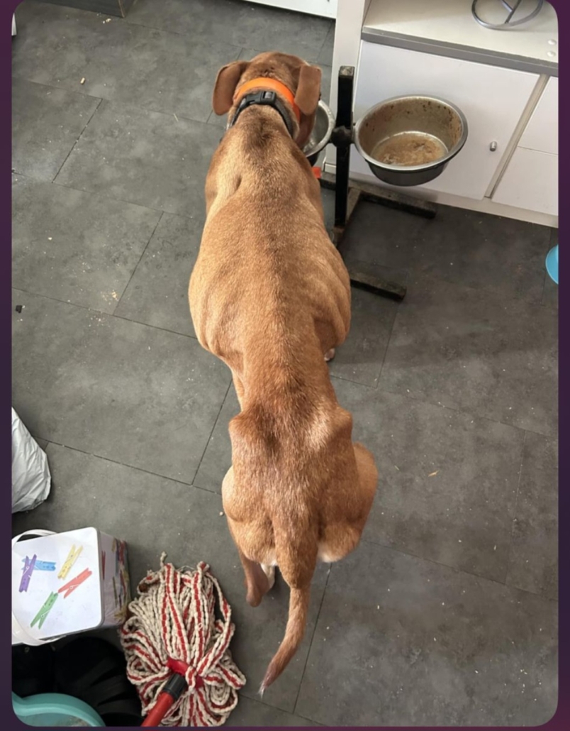 Sur place, le constat est sans appel : Palma vit dans un environnement insalubre, ses gamelles sont vides et elle présente une maigreur extrême.