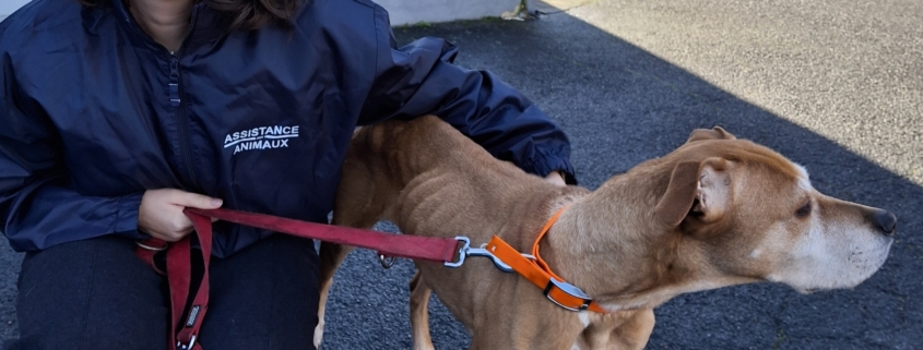 Tout a commencé vendredi dernier par un signalement alarmant montrant une chienne tenant à peine sur ses pattes.