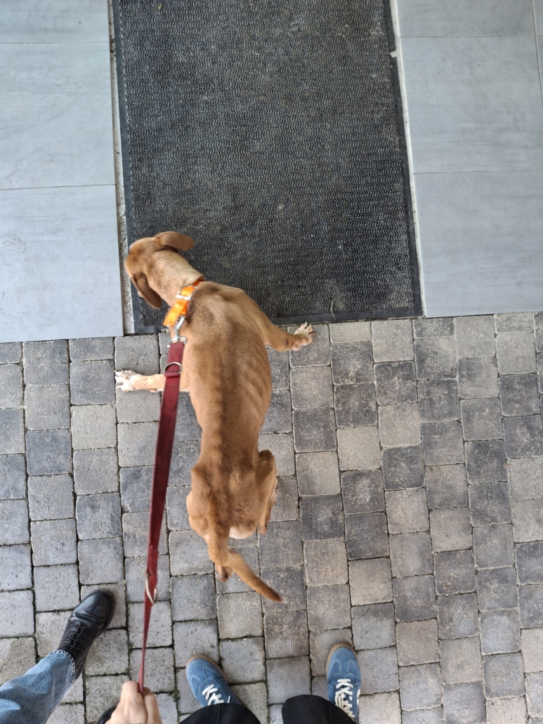 Pour justifier son état, son propriétaire avance qu’elle serait malade depuis une semaine et vomirait ses repas. Pourtant, il admet dans la foulée qu’elle n’a pas vu de vétérinaire depuis au moins trois ans. Il tente aussi de nous faire croire qu’il court régulièrement avec elle, mais la longueur de ses griffes raconte une toute autre histoire.